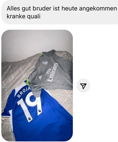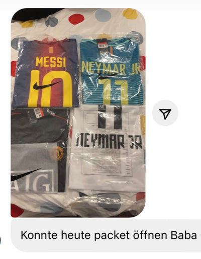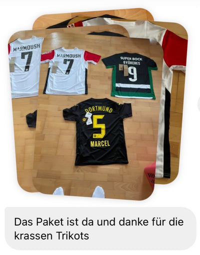 Paket ist angekommen – richtig geile Trikots! Danke für den starken Service, bin mega zufrieden.